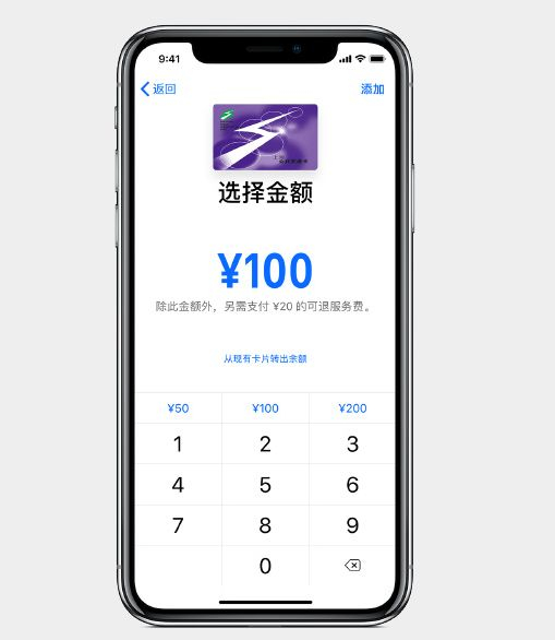 要在 iPhone 上添加新的北京一卡通(上海交通卡),请打开钱包 app,轻点“+”标识,然后选择北京一卡通(上海交通卡),输入金额,最后付款。