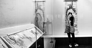 观众在参观“四僧(明末清初的弘仁、髡残、八大山人、石涛四僧)书画展”。新华社发