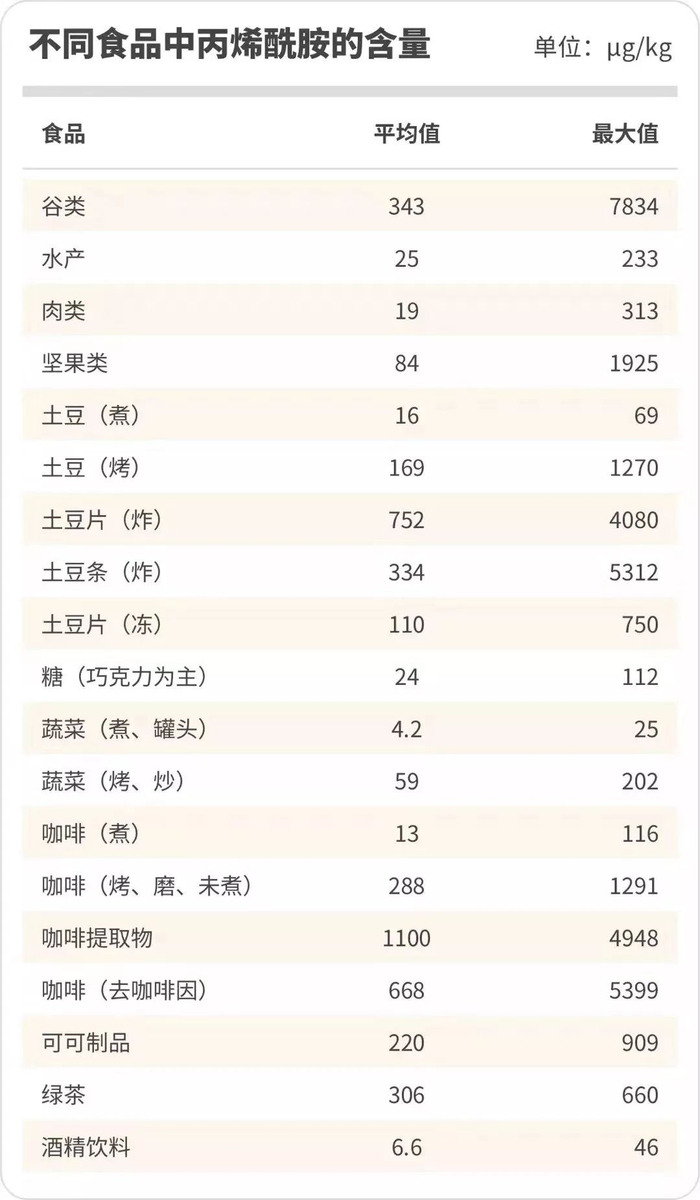 总的来看,这3类食品中丙烯酰胺含量较高(中国情况差不多)