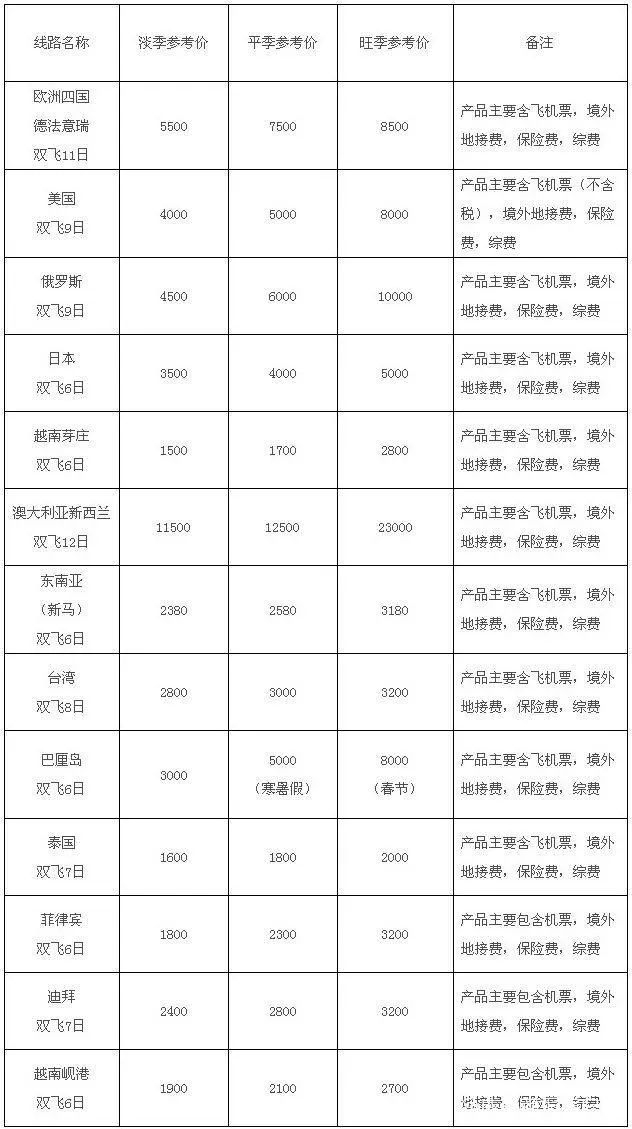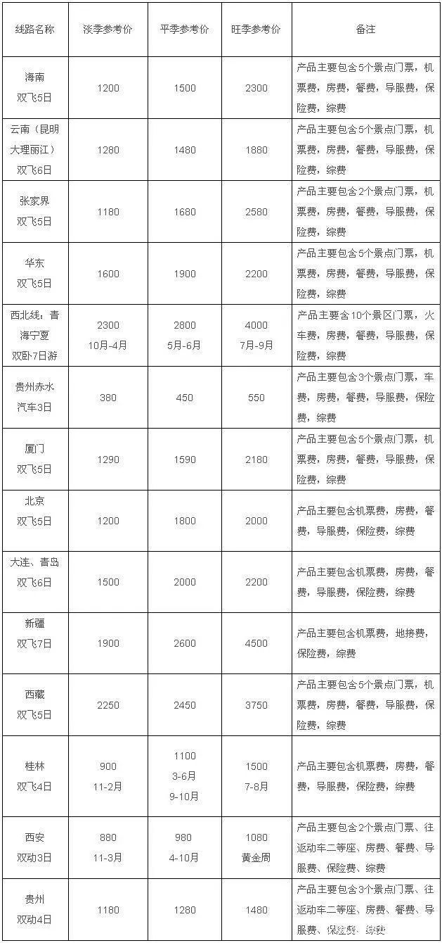 (个别国内景区及出境线路产品,应结合目的实际地淡旺季时间)