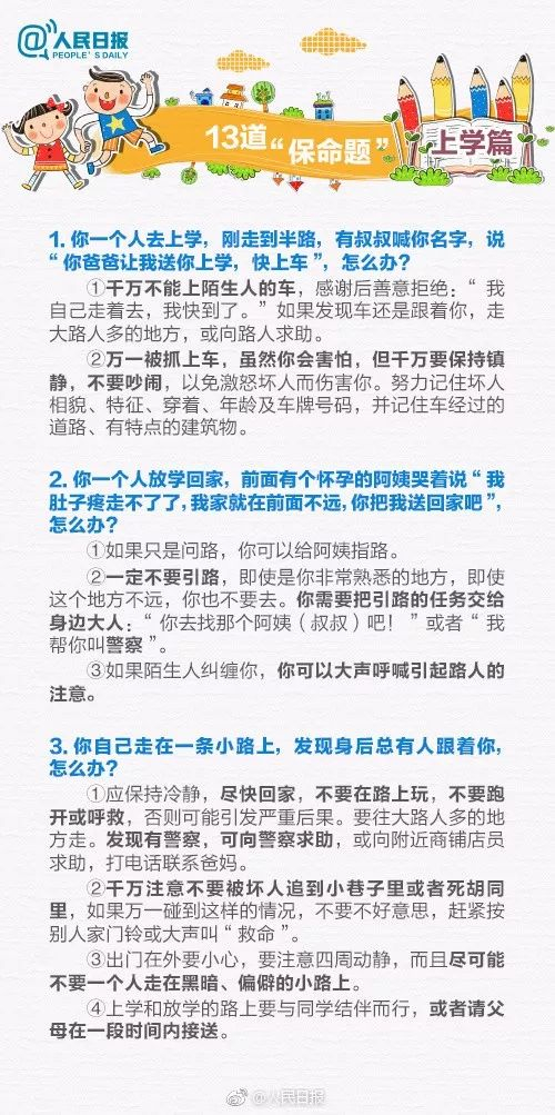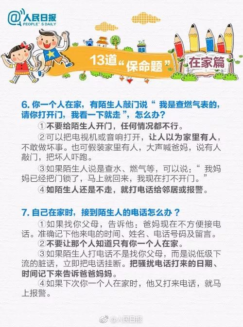 请务必教会孩子13道“保命题”
