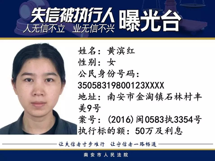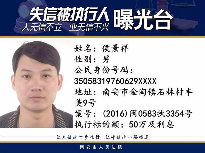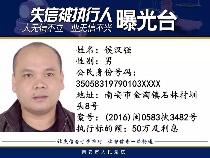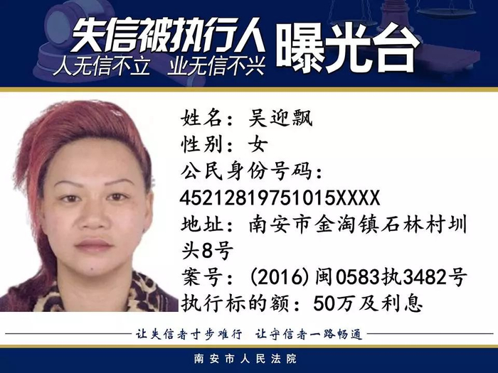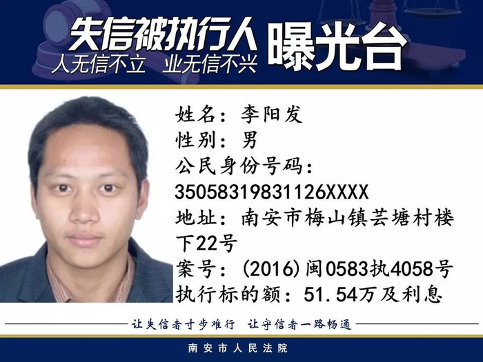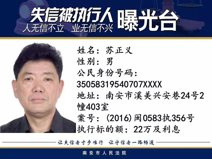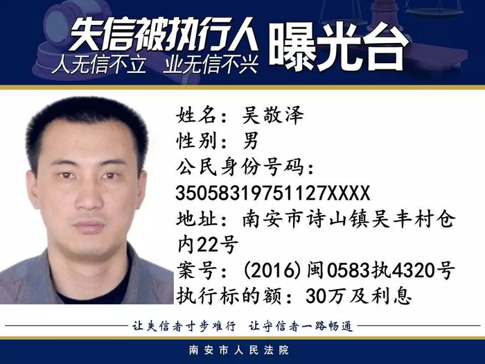 南安法院刚曝光一批失信人名单,最高欠款100万!
