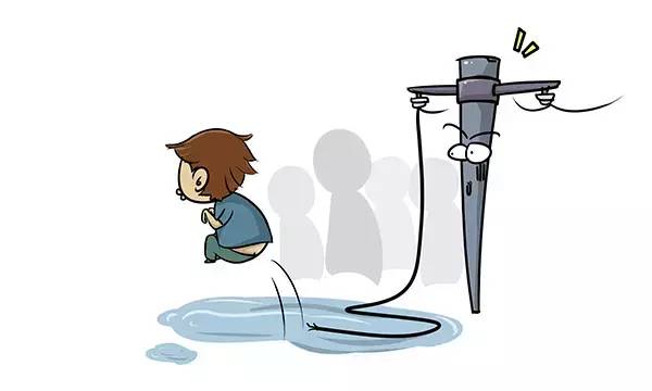 如果发现电线断落在离自己很近的地面,要淡定!不要撒腿就跑。应该采取单腿跳跃或者双腿并拢的方式跳离现场。同时请通知供电部门来处理。