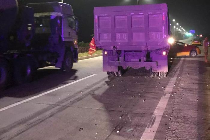 遭遇飞来横祸,车上学员如经历了夜半惊魂,黄教练也气不打一处来。下车一看,原来是一辆泥头车闯的祸!▼
