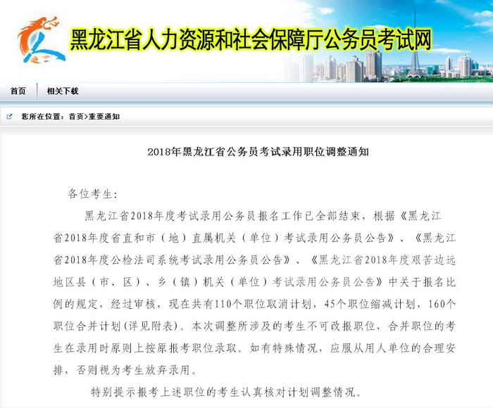 黑龙江省公务员考试重大调整!110个职位取消、45个职位缩减、160个职位合并……