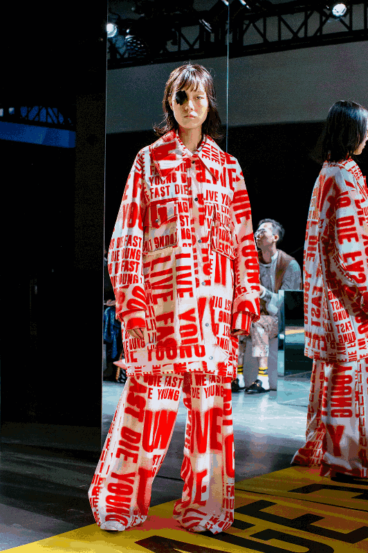 “朋克炸裂”的风格是Ying Shen在坚持的,这次的“初心”创作主要应用了黑色、红色、黄色等颜色,这些也是她本次走秀系列的主色调,应用了涂鸦手绘的元素,自带炸裂感。