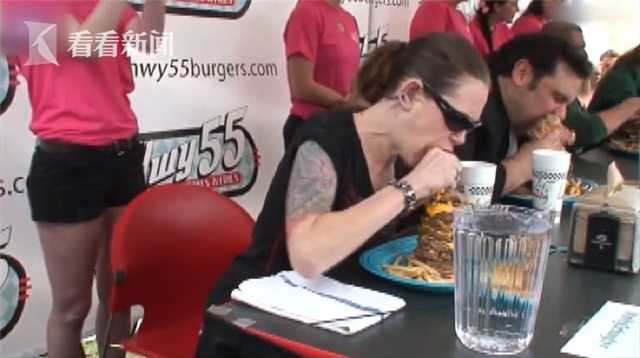 视频|风暴吸入!大胃王妈妈2分钟吃下1.5公斤汉堡