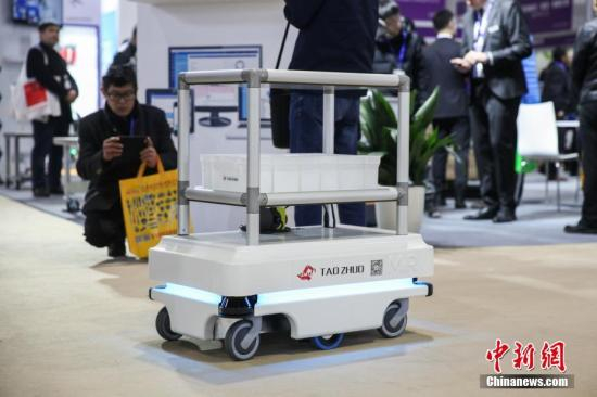 丹麦展商MiR带来的移动机器人引人关注,与AGV技术依靠地面磁钉导航不同,MiR机器人完全凭借先进2D雷达扫描技术自主行驶,被外界誉为“室内版无人驾驶”。张亨伟 摄