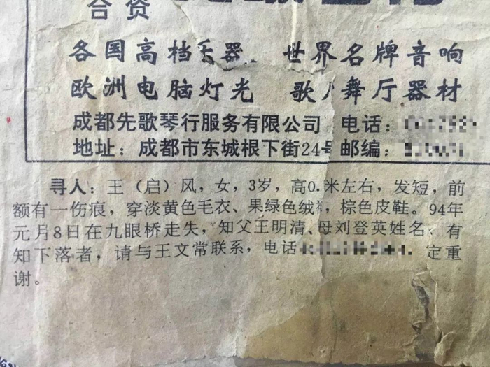 1994年1月8日,王明清与还差10天就年满4岁的女儿王启凤在成都失散。从那儿以后,他便开始了漫漫的寻女路。