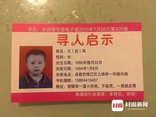 上面写着女儿王启凤走失的情况
