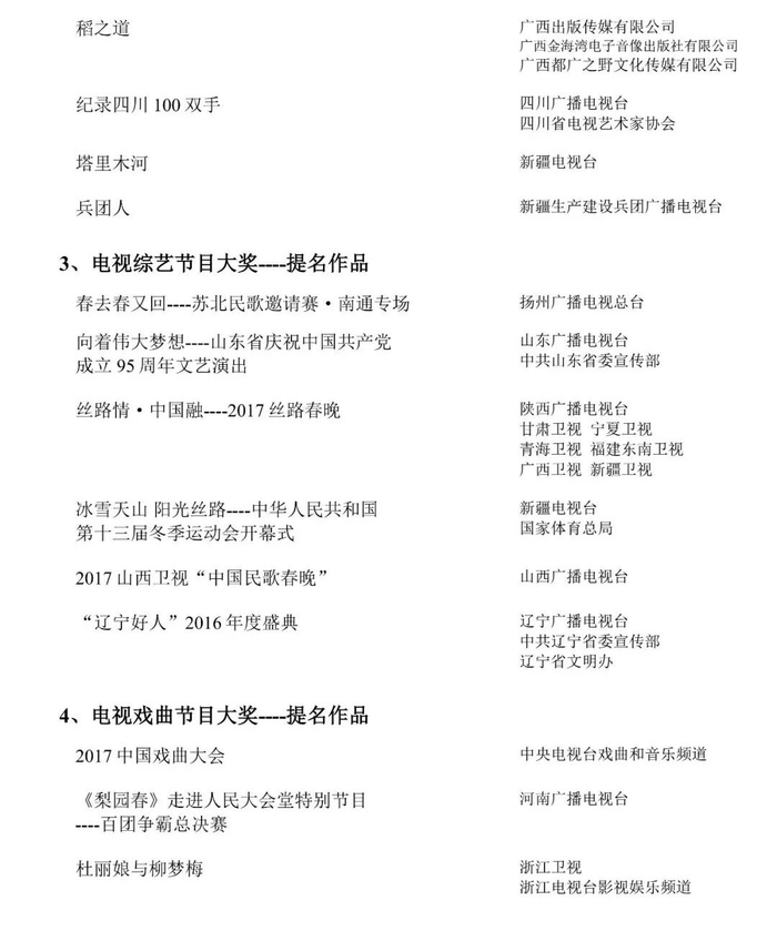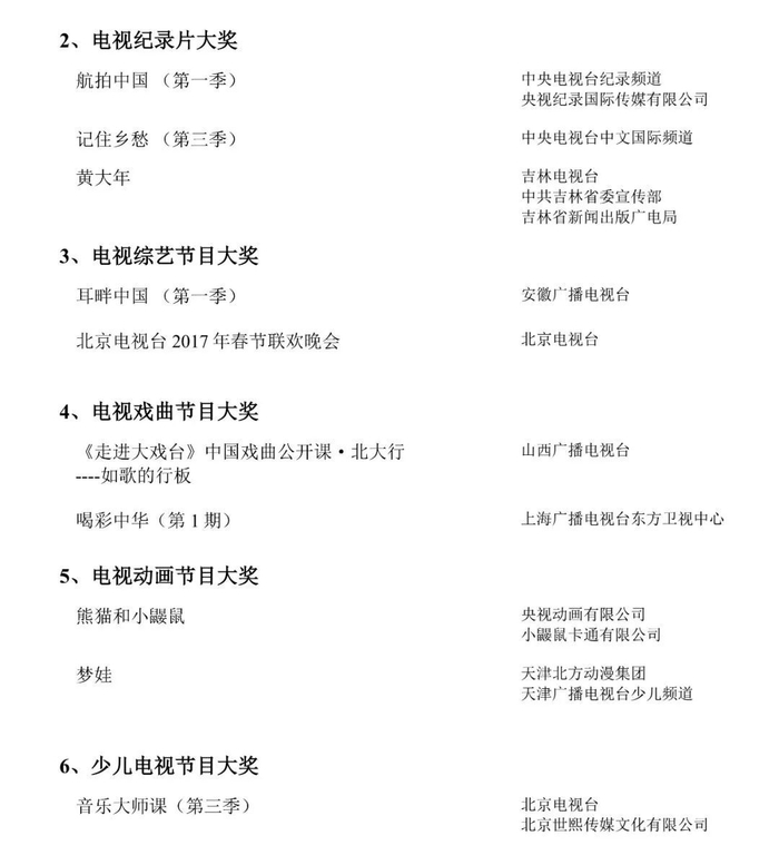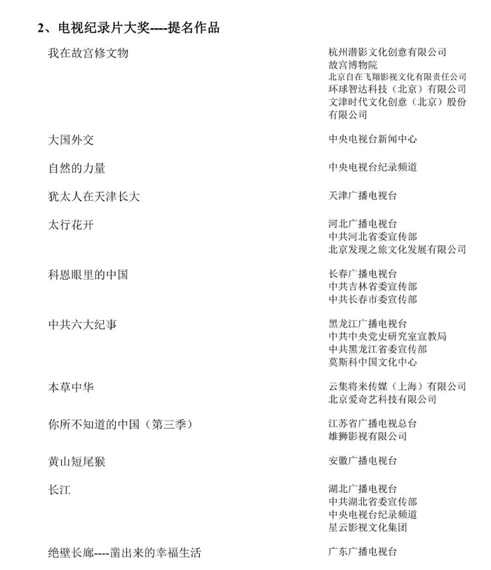 本届星光奖在获奖作品数量上严格控制,因此对参评作品的创作水准要求极高。尤其在电视文艺这一大类别里,全国只有14部作品获得奖项,其中纪录片类仅有3部作品荣获大奖。尤为难得的是,由吉林电视台创作的纪录片《黄大年》是全国唯一一部地方台出品的获奖作品。其余两部为中央电视台出品的《航拍中国》和《记住乡愁》。