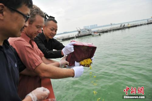 葛瑞格·米莱特的部分骨灰被撒入滇池,魂归昆明眷土。(中新社记者 任东 摄)