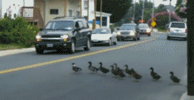 一辆黄色轿车立刻刹车礼让