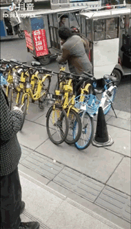 默默扶起了一辆又一辆倒地的共享单车……