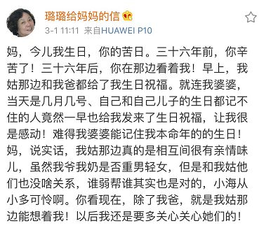之后她也真的好像母亲还在世一样,不断地在微博上发着想说给母亲听的话,每篇都以“妈”开头,就像唠嗑一样。