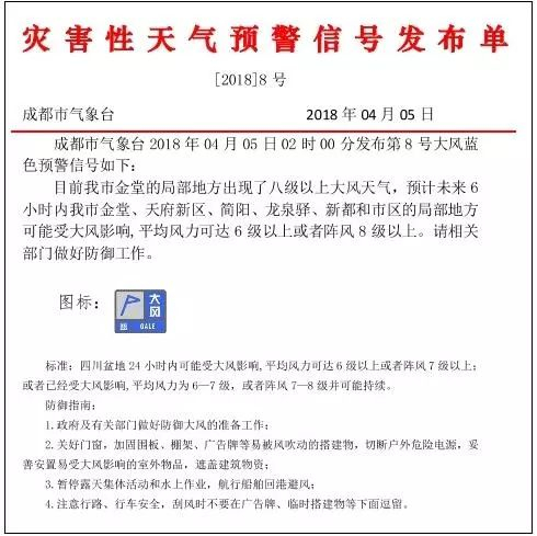 看看今天凌晨成都发布的大风蓝色预警吧!