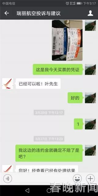 叶先生与航空公司的对话截图