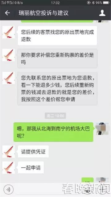 黄女士与航空公司的对话截图