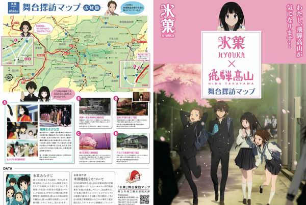 实际上,这并非飞驒地区第一次借着热门动漫而出名。之前,由京都动画公司于2012年推出的电视动画《冰果》,已经让地处闭塞山区的飞驒地区尤其是高山市,成了日本全国乃至海外观众心目中的“圣地”。《冰果》由著名推理小说家米泽穗信的《古典部》系列小说改编而来。故事中,男女主角所在“神山市”的原型就是米泽穗信的家乡——飞驒高山市。无论是《冰果》,还是《你的名字。》都对飞驒或高山的风土人情有着细致入微的描写,甚至在主线剧情之外,还不吝笔墨地去刻画当地的社会、政治现状。