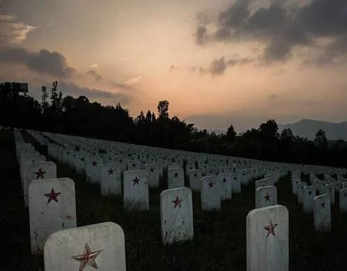 思绪万千,一块块墓碑下,我不知道他的姓名,我却知道他为国牺牲。明明不认得,我却叫的出他们的名字——中国军人。