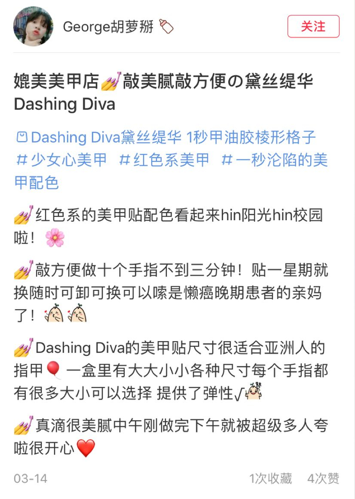 推荐给大家一个自己也可以在家完成的美甲贴——-DASHING DIVA 。
