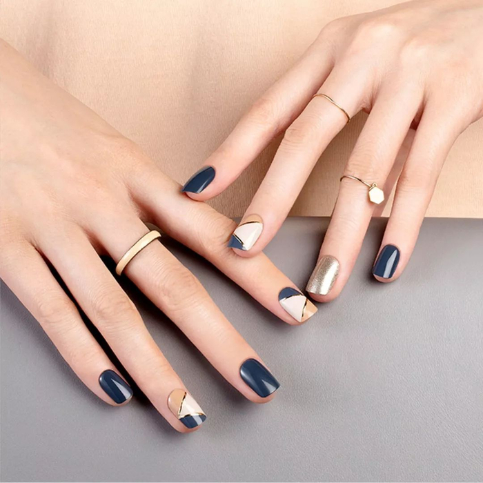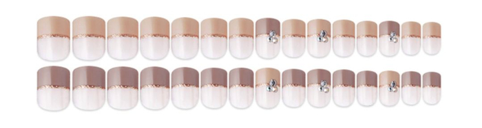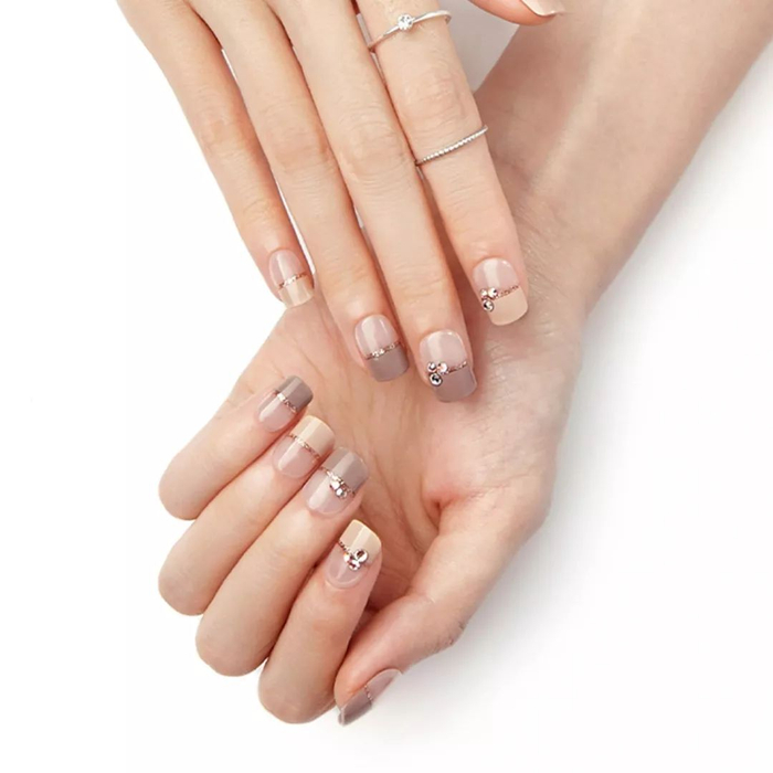 浅咖色的法式拼接搭配一个细小的亮钻,像口感柔和细腻的咖啡拿铁,让人心生喜爱。非常适合事业女性们日常上班啦,建议搭配充满女人味的服装。