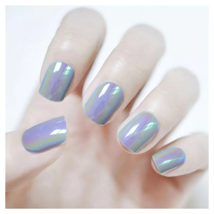 以灰蓝色为基调,在光线在会有琉璃般七彩的光泽。因为独特的质感,又被称为人鱼色。适合追求变化,用于尝试新鲜事物的女孩。