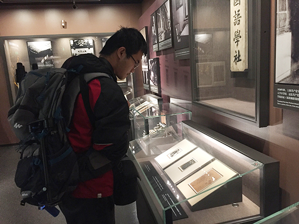 来自嘉兴的大一学生徐欢,同样在展厅里看得出神。他的身上背着大包小包,里面全部装着相机器材,原来,他在构思拍摄关于革命圣地的小短片。