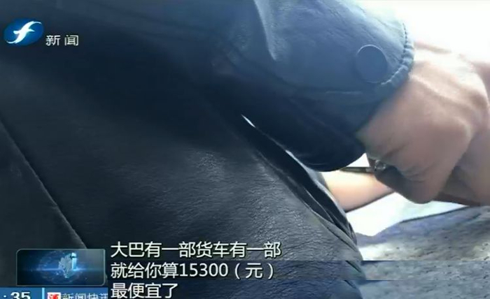 就给你按最便宜的,就是说,穿衣服化妆都给你做,连红白布都给你算进去,大巴有一部货车有一部,就给你算15300,最便宜了。