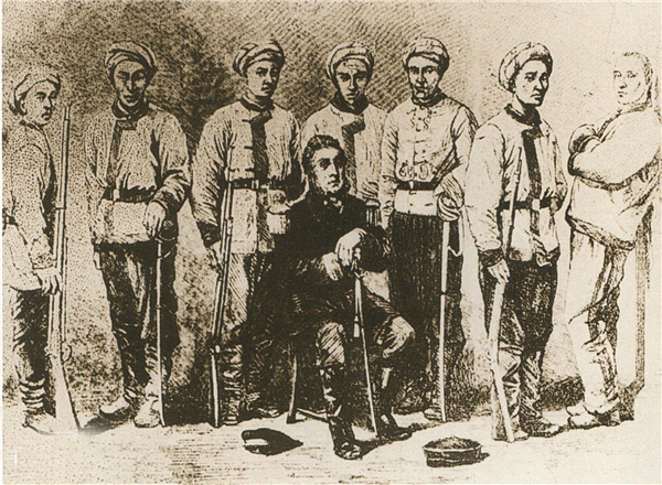 在清末军队近代化的过程中,淮军显然领风气之先,成了当时其他清军效法的榜样。“在湘军者,则锻炼体魄,与刀矛、马枪、抬枪、劈山炮等技,以及三才、鸳鸯等阵法。淮军则全改西式,所采练手足,演枪炮各法,以及林操、行军、测绘、战阵,多不同于湘军”(王尔敏《淮军志》),甚至连口令都直接用带着口音的英语,“鸣角出令皆夷语”(王定安《湘军记》)。