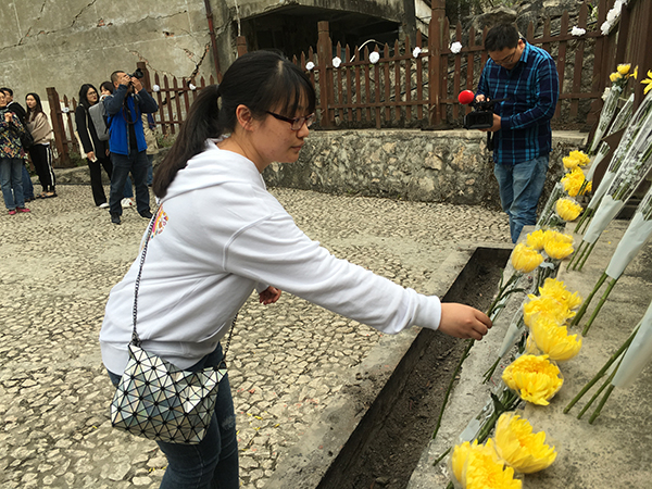 4月6日,清明小长假第二天,二十余名在汶川大地震中幸存的北川中学师生,先后前往北川老县城地震遗址、北川中学遗址,为在地震中遇难的教师和同学献花祭奠。