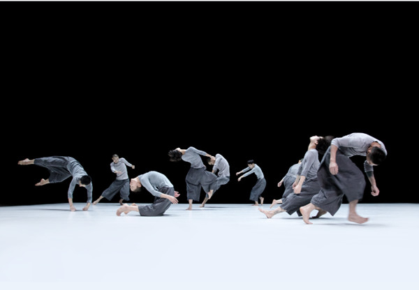 《9》的背景音乐就是舞者的呼吸声,呼吸越到后面越急促,都是舞者和地面摩擦、碰撞的声音,是能吸引观众进入到作品里的。《9》看起来很乱,但每一位舞者都黏连在一起。去年在国家大剧院演出时,有人评论看《9》就像在看千手观音,看《8》就像在看月亮,需要人用一种很原始的心境进入,很有意思。