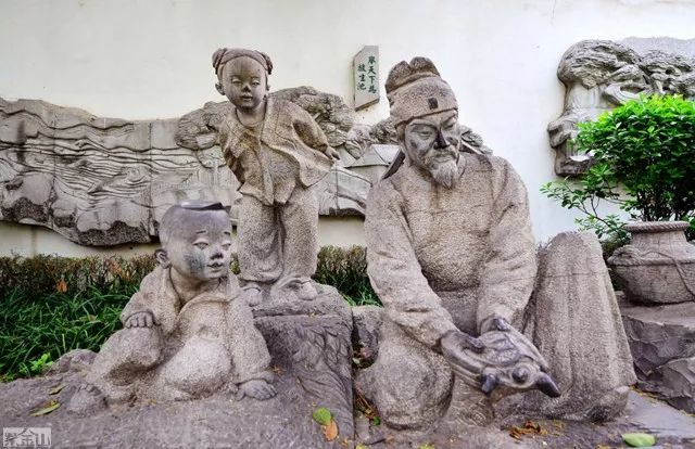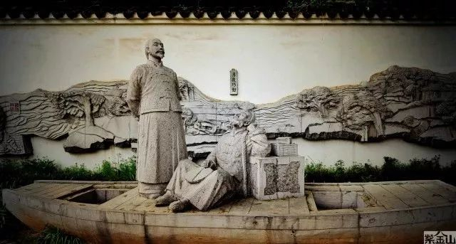 在文化墙前的“月夜巧对”雕塑中,魏源和陶澍泛舟潭上,魏源似在以“有此妙处,何必西湖。”对答……