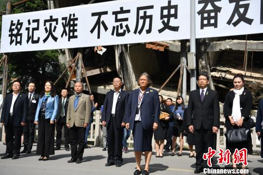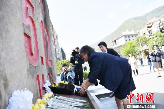 图为诗琳通向地震遇难者表示哀悼。 张浪 摄