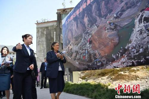 图为诗琳通参观北川老县城鸟瞰图。 张浪 摄
