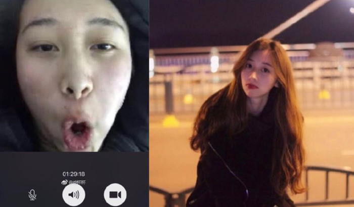 左边躺在床上跟闺蜜视频,