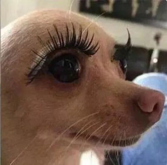 摘掉了长长的假睫毛,