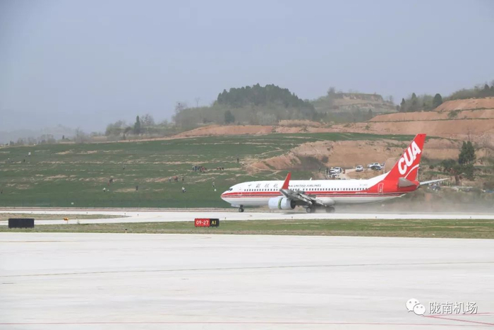 4月6日11时47分,由中国联合航空公司执飞的KN5621次航班安全抵达陇南成县机场,标志着北京南苑-陇南航线首航成功。