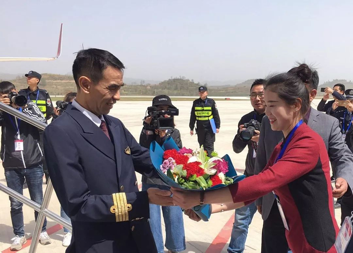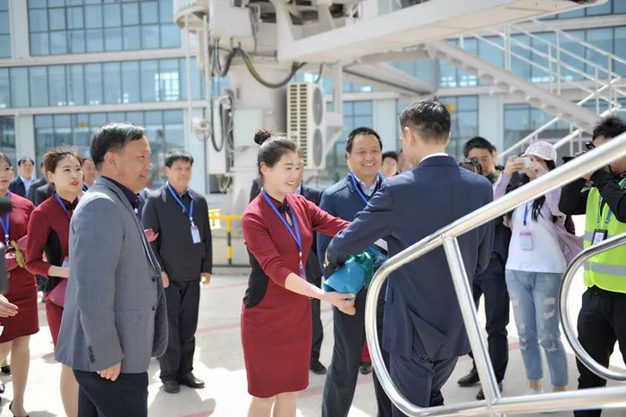 ▲机场停机坪,大家热烈欢迎机组人员并为他们献上美丽的鲜花。