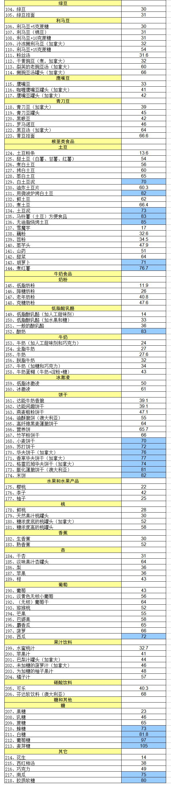 (数值越高代表单位时间升高血糖越多。)
