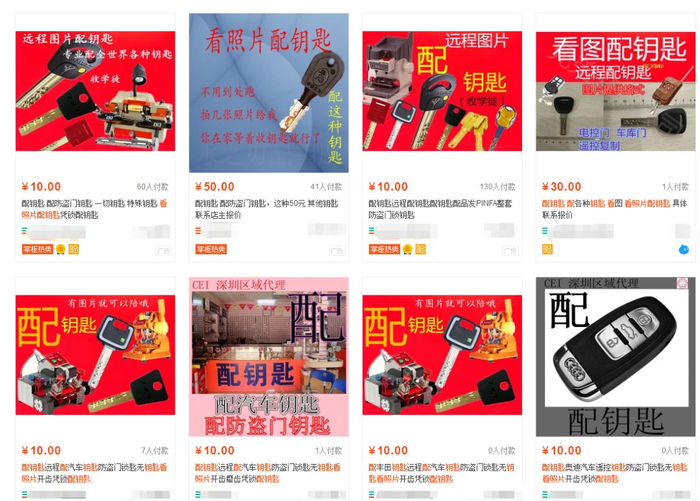 记者选择了一家销售量较高的店铺,商家表示可以提供防盗门、抽屉等各种钥匙,价格从10元至60元不等,其最高的一款商品月销量达到486笔,销售火爆。