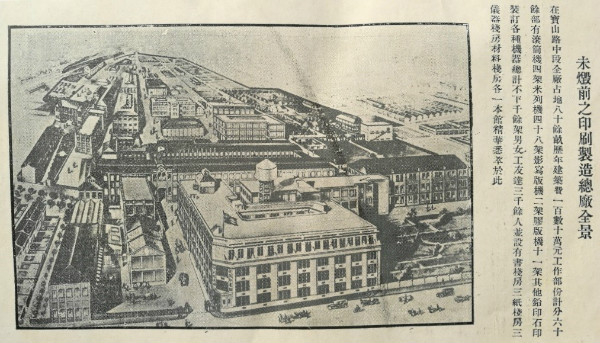 1932年1月28日夜11时后,日本海军陆战队进犯闸北,我十九路军奋起抵抗,“一·二八”事变爆发。次日上午十时许,日军飞机对非军事目标——商务印书馆总厂实施定点轰炸,多次投掷大型燃烧弹,导致位于宝山路的总管理处、编译所、四个印刷所、仓库、尚公小学等皆中弹起火,全部焚毁。三十五年的辉煌基业顷刻化为灰烬。万幸的是,商务印书馆上海总厂几乎没有员工在战火中伤亡;全国各地的分支馆以及北平、香港的分厂仍在运营;位于上海天通庵路的第五印刷厂内的很多物资未遭殃及,商务员工冒着枪林弹雨把幸存物资抢运出来。