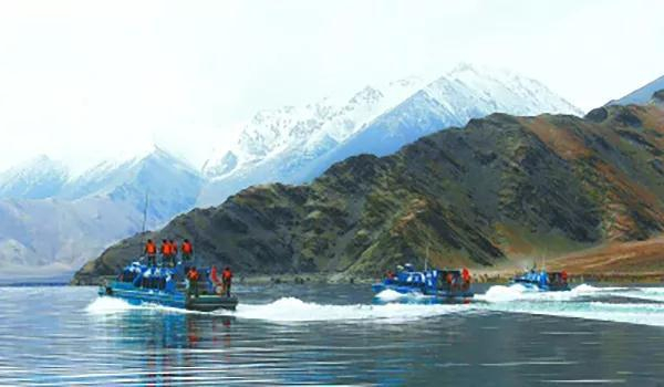 在中印边境海拔4250米的班公湖,我军新型边防巡逻艇使用新型非金属材料制成,不惧湖中冰块碰撞,而且克服了高原空气稀薄发动机启动困难的问题,巡逻艇的速度很快可以上升到每小时40公里,开创了国内外小型船艇在高海拔低压缺氧条件下顺利起滑并高速滑行的先例,处于国际领先水平。