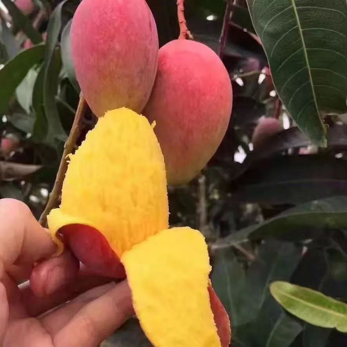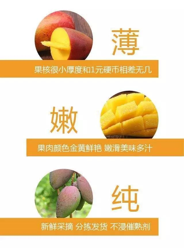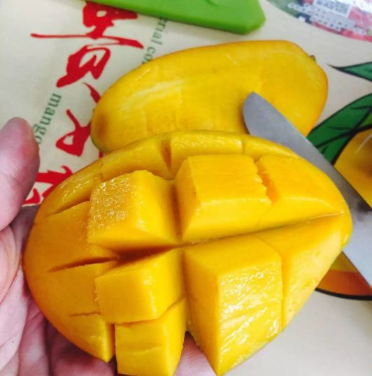 为保证果子口感,果园熟摘空运大连,不用等七天陆运,回家也不用捂熟,开箱剥皮就能吃。剥皮的那瞬间,就能感受到贵妃芒那极薄的果皮,果肉敦实呈橙黄色,一下嘴,细嫩醇甜~不麻嘴,不塞牙,不涩口。