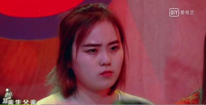 看看这位女生在听到“亲生父亲”时震惊的表情。