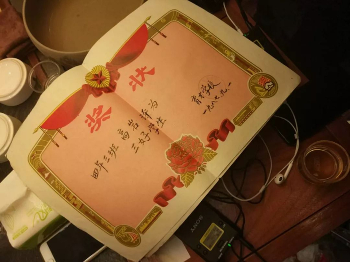 高岩的母亲展示高岩小时候的获奖证书。图中为一部分。中国青年报·中青在线记者卢义杰摄