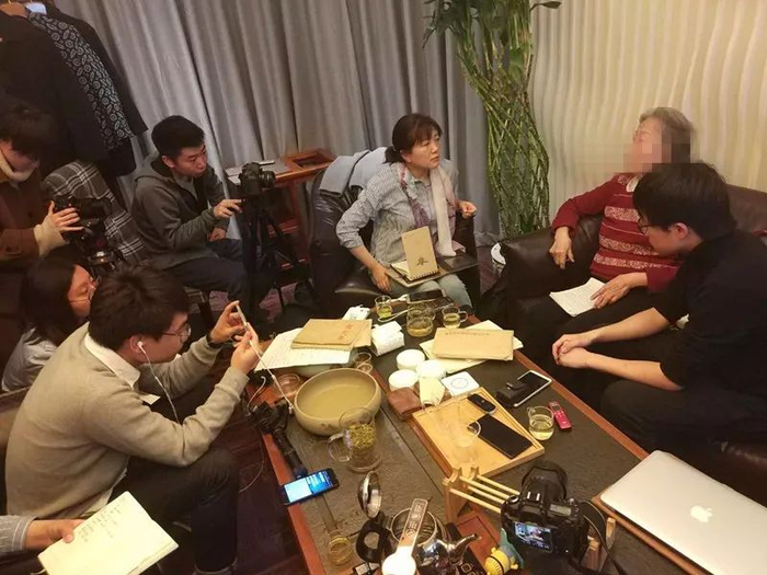 4月7日下午,高岩的母亲在北京接受集体采访。 中国青年报·中青在线记者卢义杰 摄
