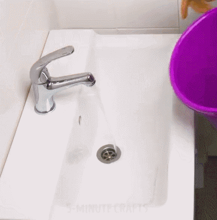 只需要在水龙头前加一个小铲子或者大号的塑料瓶,就能方便接水啦!