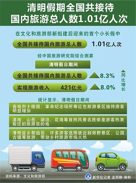 中央纪委国家监委网站8日消息,辽宁省政协原常委、省政协委员工作委员会原副主任赵战鼓涉嫌严重违纪违法,目前正接受纪律审查和监察调查。国家广播电视总局宣传司司长高长力日前表示,今后广播电视节目必须继续遵循“小成本、大情怀、正能量”的自主创新原则,不讲排场、比阔气、拼明星,不沉溺于个人主义的浅吟低唱、自娱自乐。《2018年清明假日旅游及景区消费报告》显示,今年清明假期,旅游消费高涨,文化需求活跃,全国国内旅游接待总人数1.01亿人次,同比增长8.3%;实现旅游收入421亿元,同比增长8.0%。