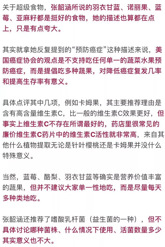 张韶涵分享的内容究竟够不够科学?请大家暂且按住在代购网站添加购物车的右手,先看看北京营养师协会理事、知名营养师顾中一是如何点评的。